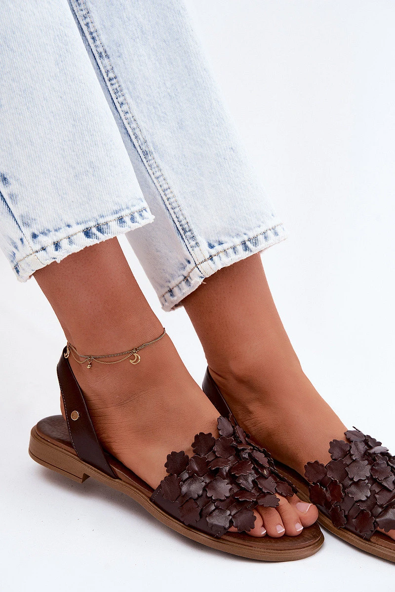 Kožené sandály na nízkém podpatku model 22122932 Čokoládové - Zazoo