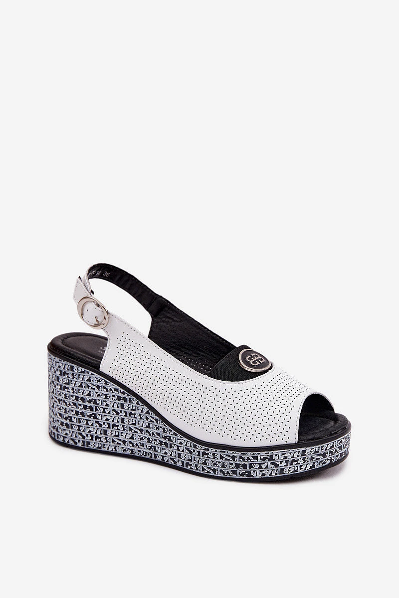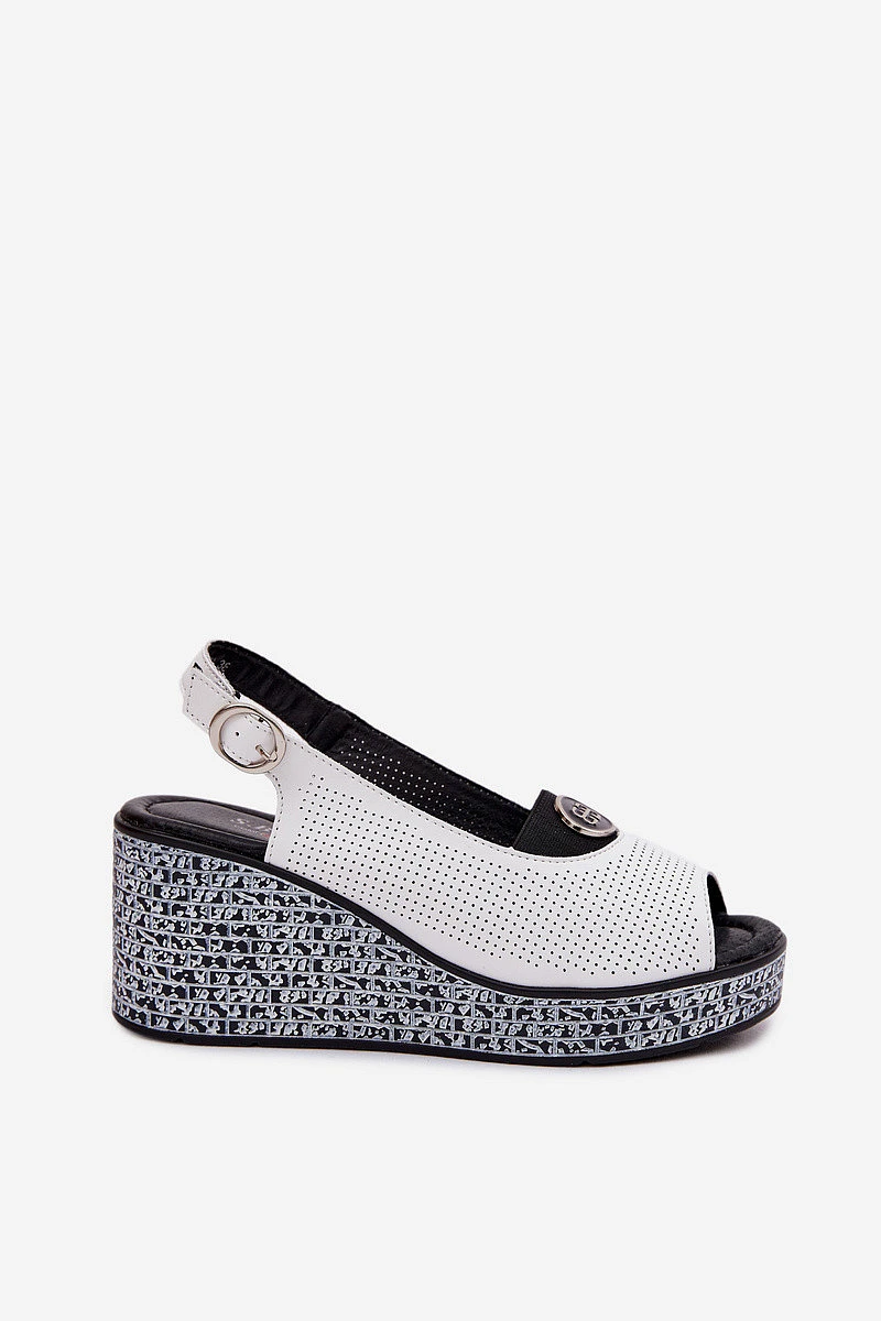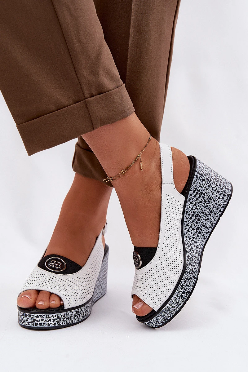 Kožené sandály na platformě model 22101381 bílé - S.Barski