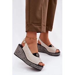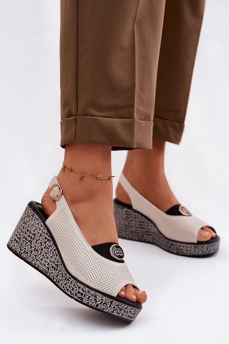 Kožené sandály na platformě S.Barski LR61-7010 Béžové