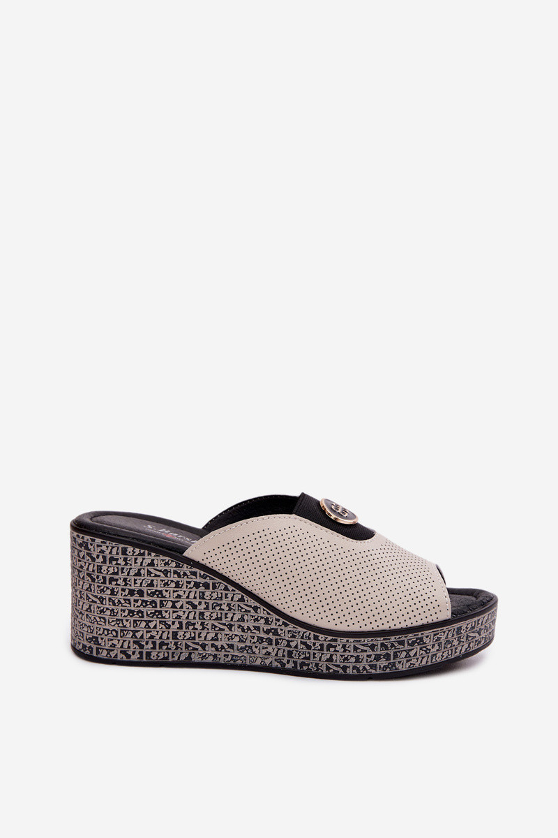 Kožené sandály na platformě s ozdobou model 22100363 Béžové - S.Barski