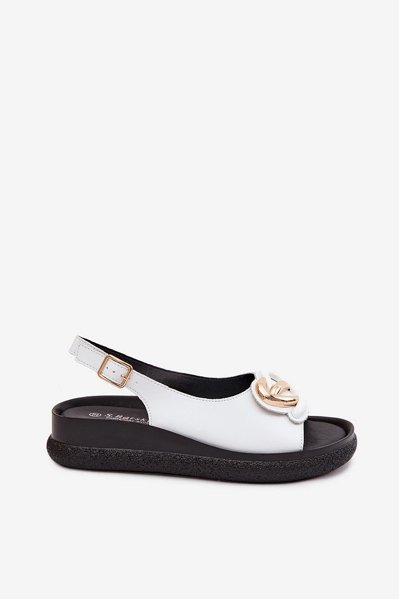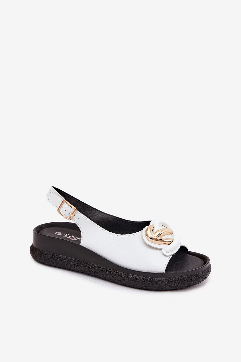 Kožené sandály na platformě s ozdobou model 22133571 Bílé - S.Barski