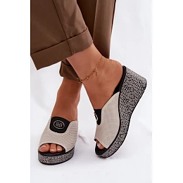 Kožené sandály na platformě s ozdobou S.Barski LR61-7011 Béžové