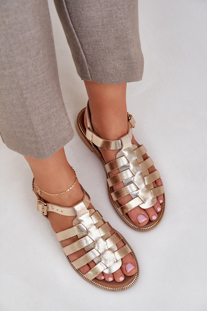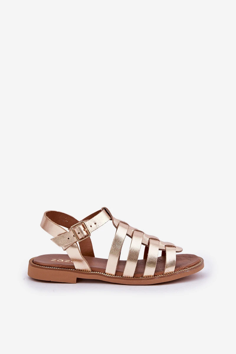 Kožené Sandály Na Plochém Podpatku Zazoo model 21682317 Zlaté - Boto