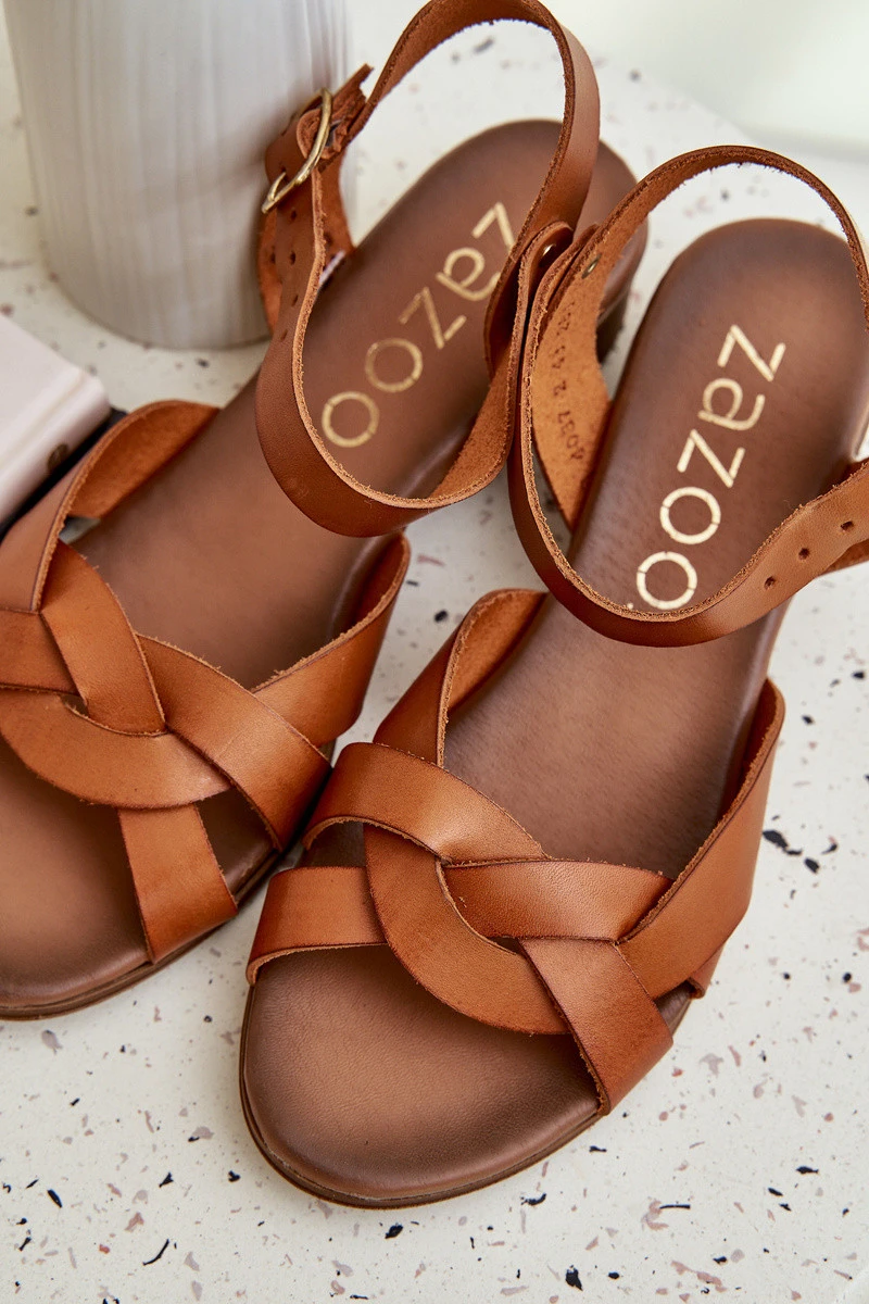 Kožené Sandály Na Podpatku Hnědé model 21684012 - Zazoo