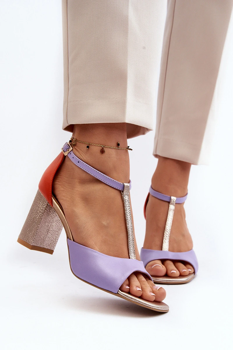 Kožené sandály na podpatku Laura Messi 2759 fialové