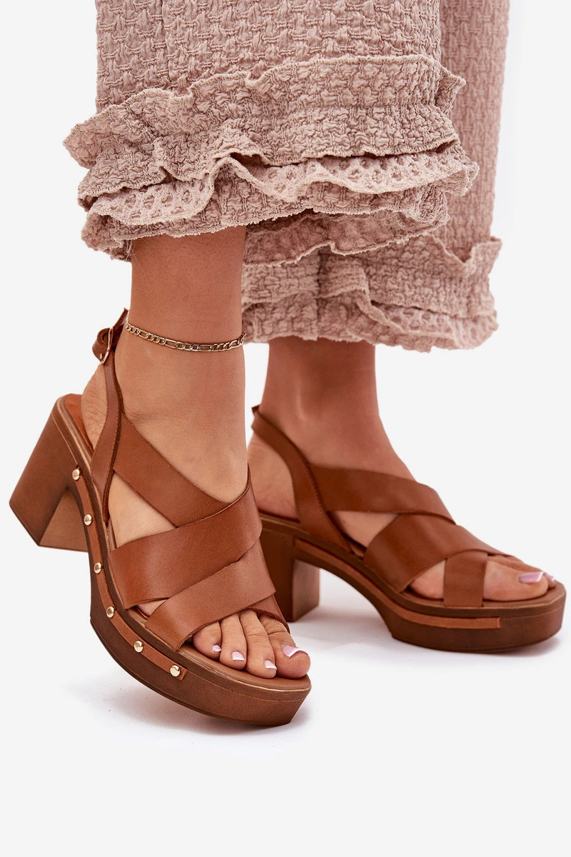 Kožené sandály na podpatku model 21699711 hnědé - Zazoo