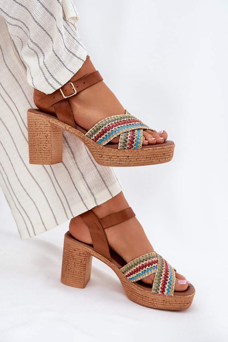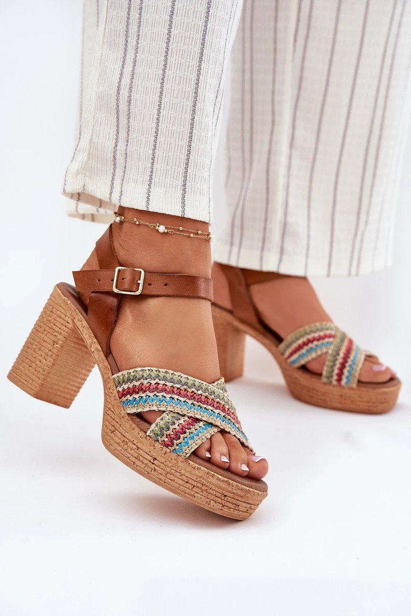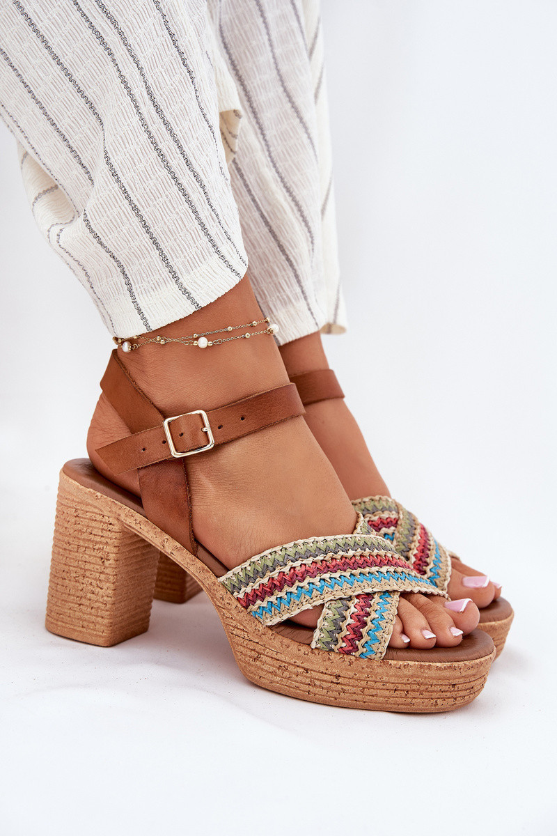 Přidání recenze k Kožené Sandály Na Podpatku S Pletením Na Hnědé model 21697379 - Zazoo