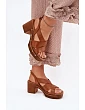 Kožené sandály na podpatku Zazoo 1081 hnědé