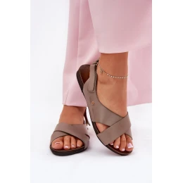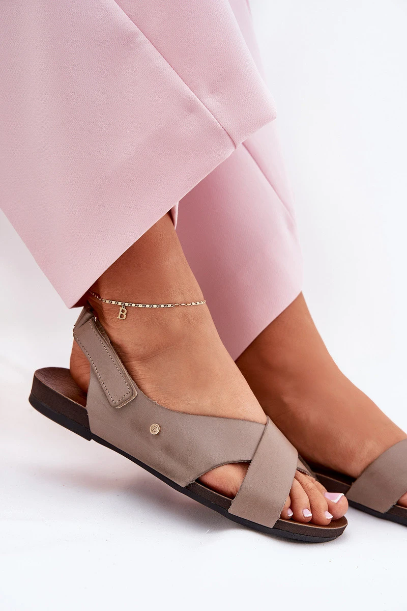 Kožené sandály na suchý zip tmavě béžové Zazoo 40141