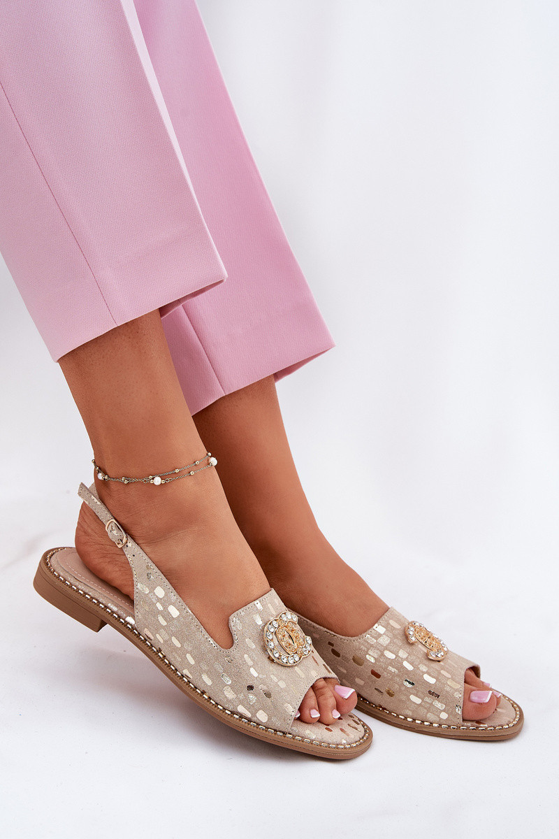 Kožené Sandály S Dekorací Na Plochém Podpatku S.Barski KV51-096 Zlaté