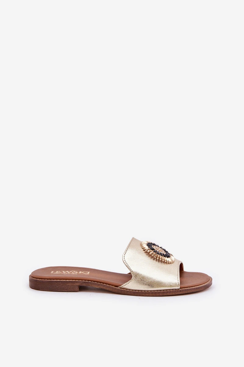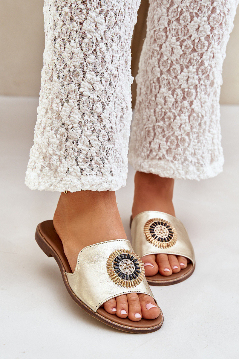 Kožené sandály s ozdobou na plochém podpatku Zazoo model 21682450 zlaté - Boto