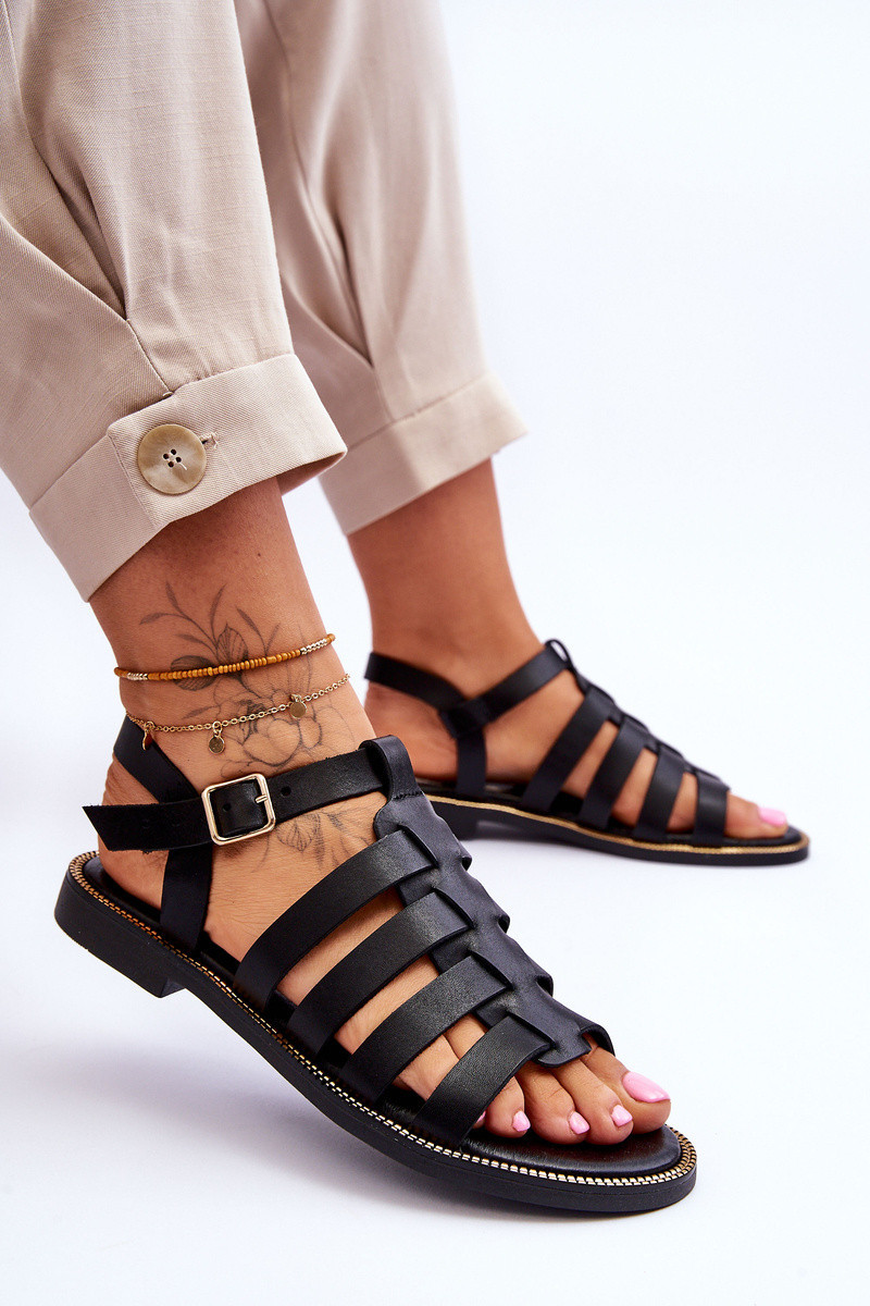 Pohodlné dámské sandály jsou vyrobeny z přírodní kůže. Mají ozdoby na podrážce. Tento model byl postaven na plochém podpatku. Sandály mají otevřenou patu a špičky. Měkká stélka zajišťuje pohodlné používání. Sandály mají klasické zapínání na přezku. Při výběru velikosti se prosím řiďte tabulkou velikostí.