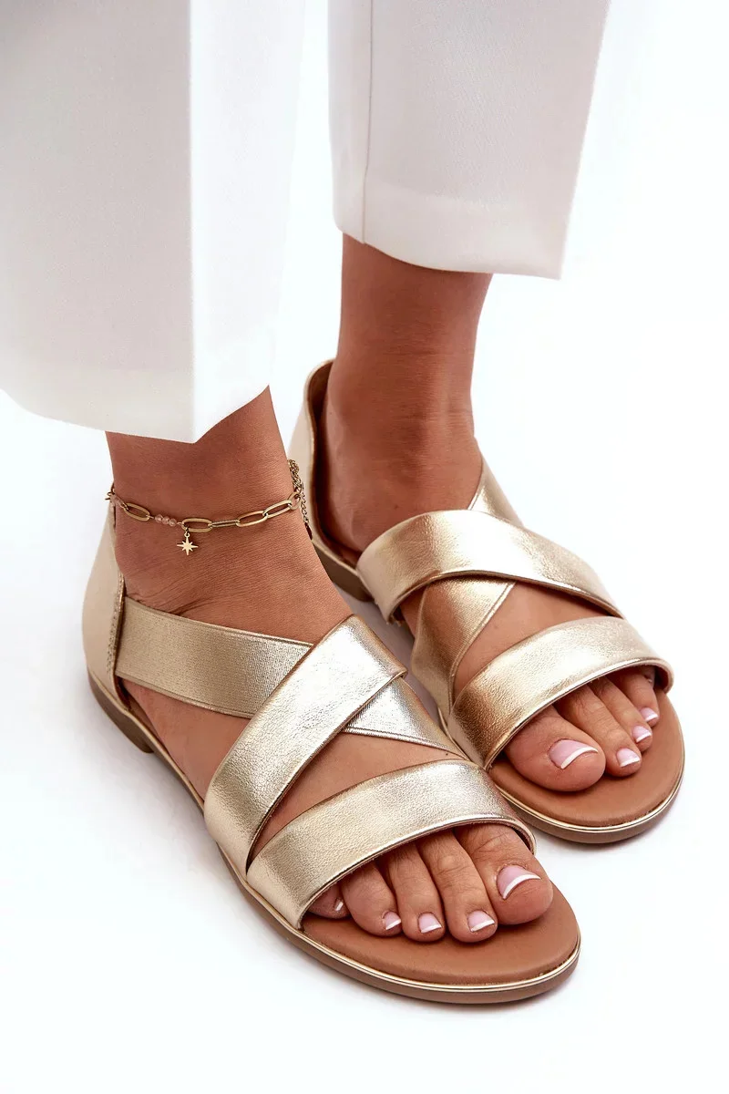 Kožené sandály se stahovací šňůrkou, zlatá Puglia