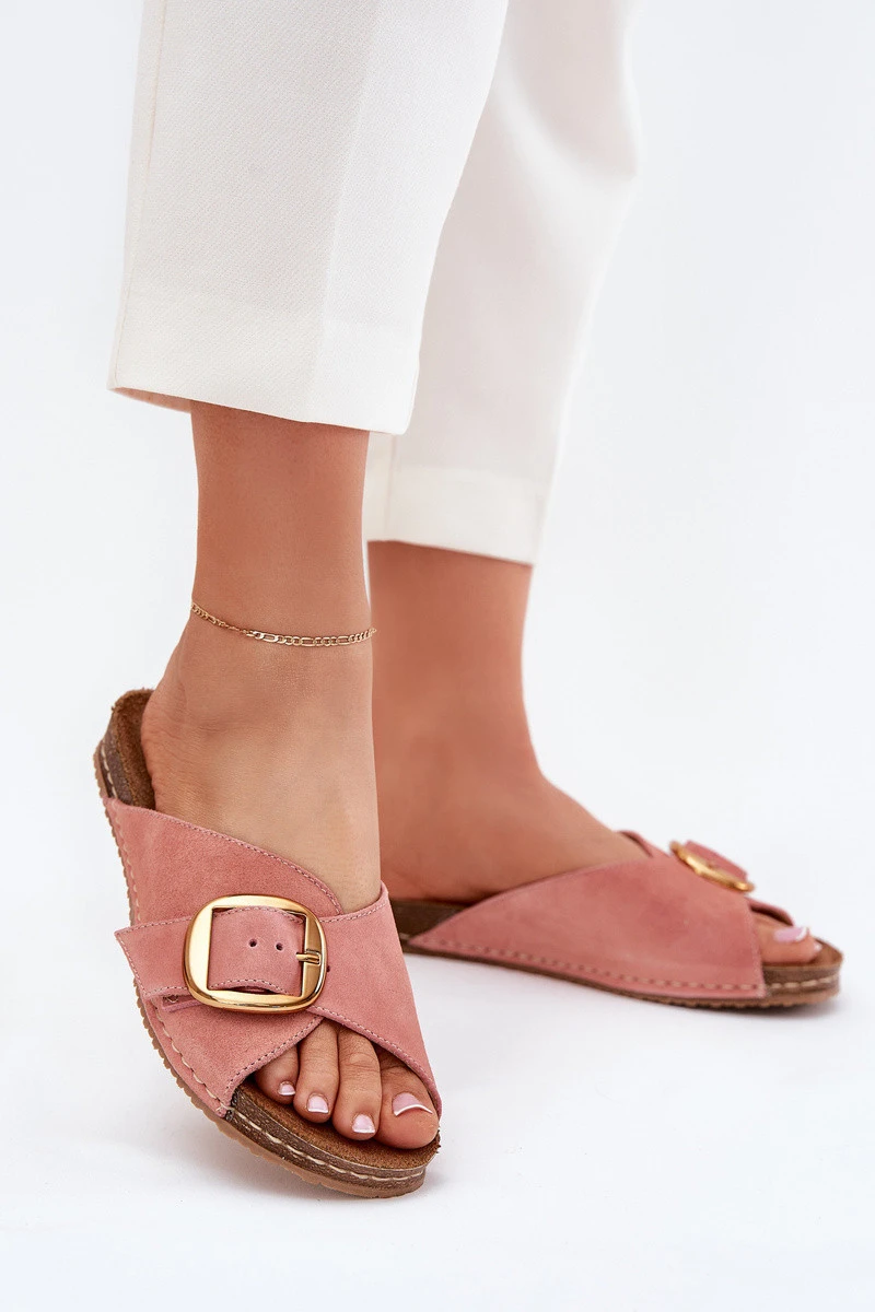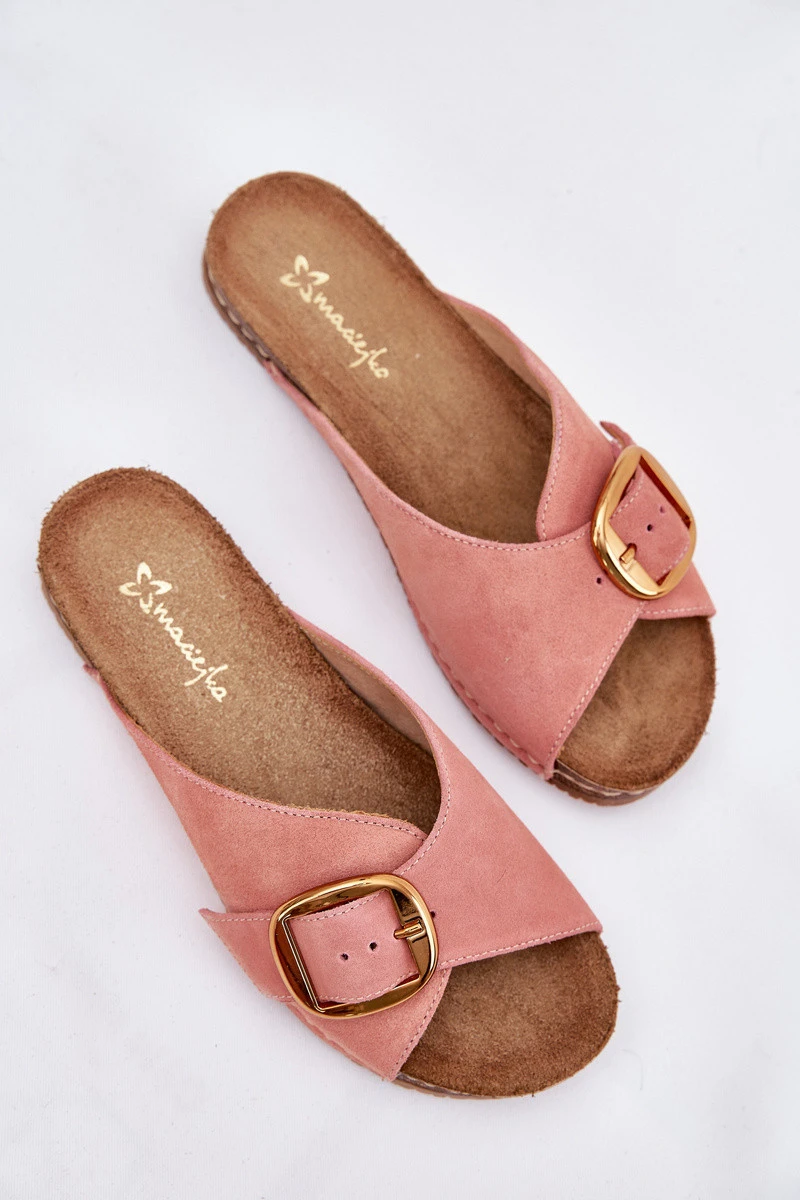 Kožené sandály se zlatou sponou Maciejka 07000-15 Růžové