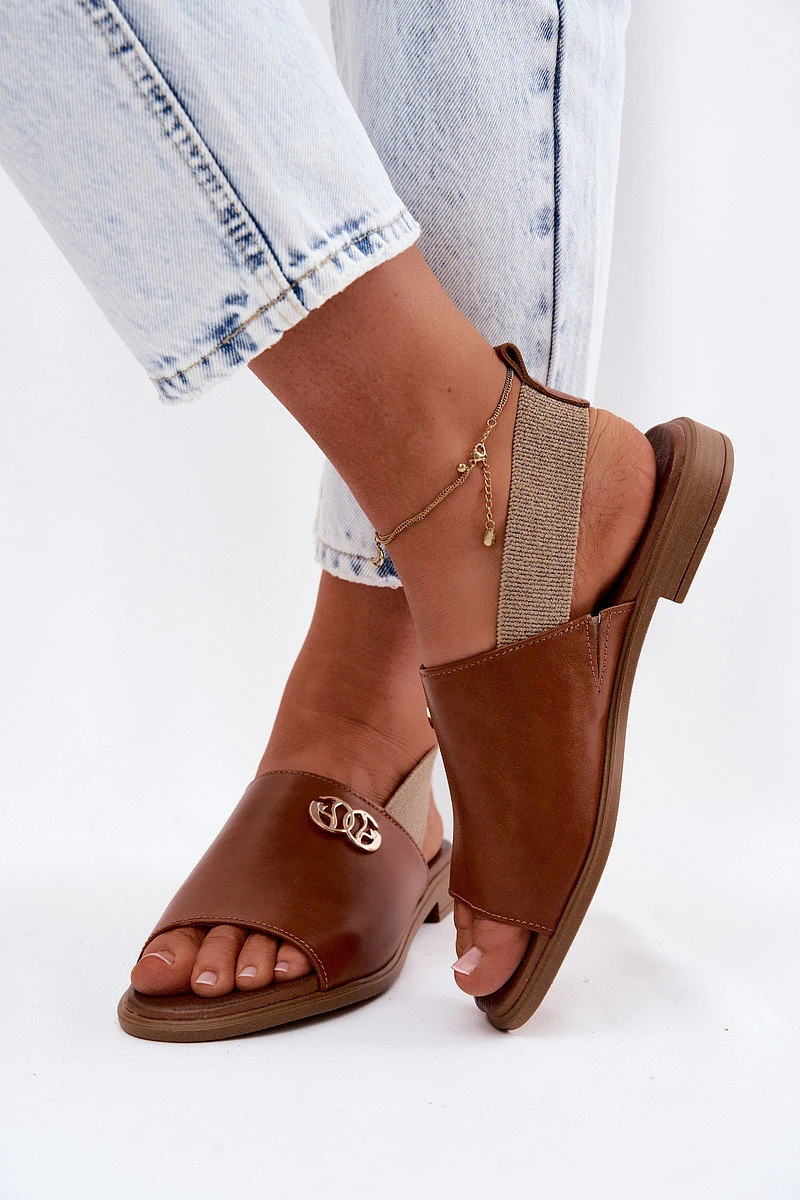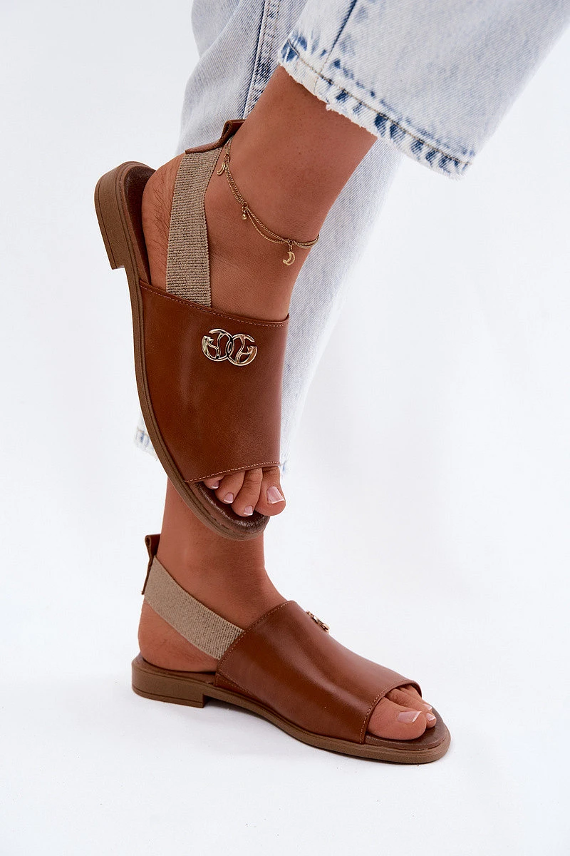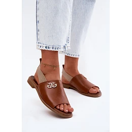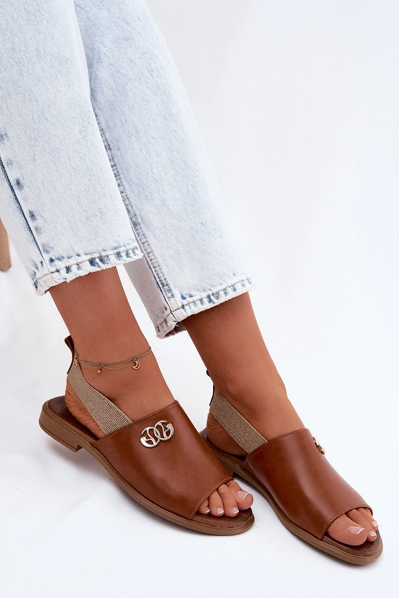 Kožené sandály se zlatým detailem Zazoo 40473 Hnědé