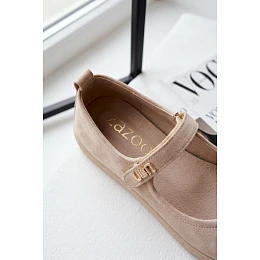 Kožené semišové baleríny Barefoot s páskem model 22073651 béžové - Zazoo