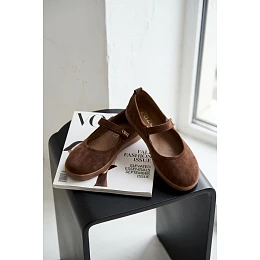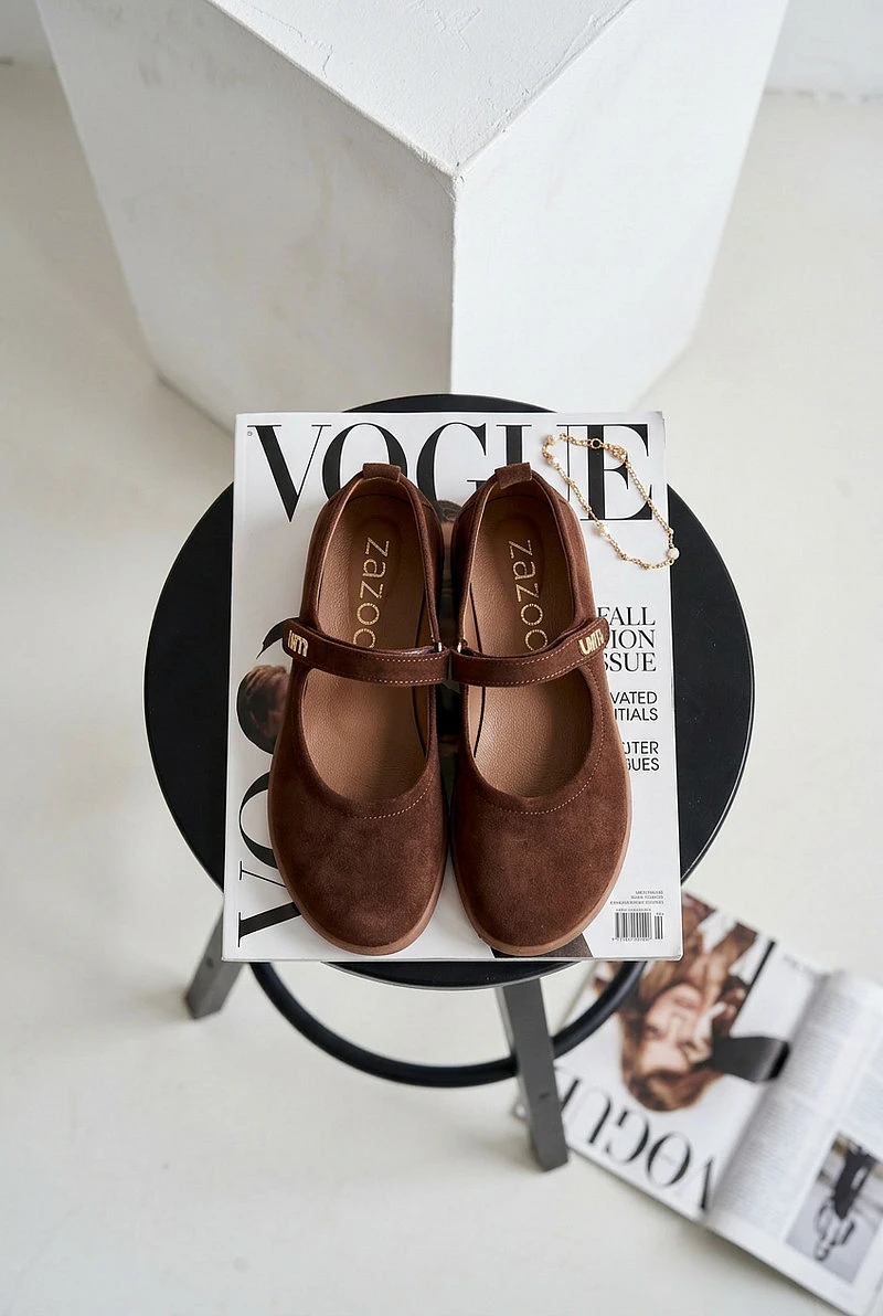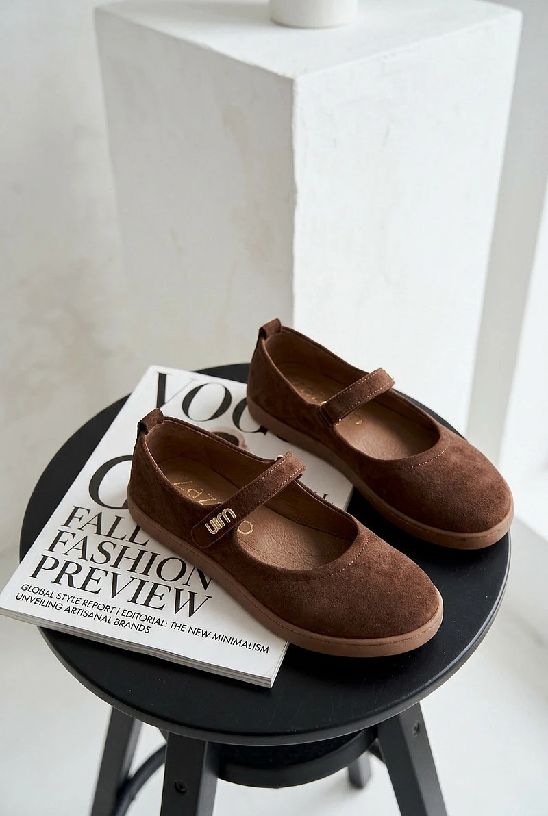 Kožené semišové baleríny Barefoot s páskem Zazoo 10206 Čokoládové