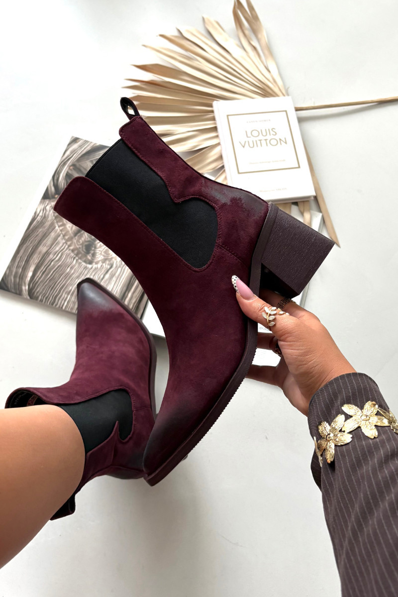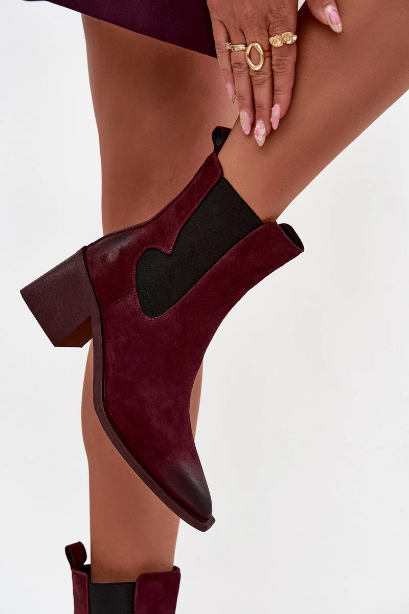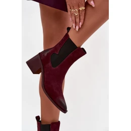 Kožené semišové dámské boty na podpatku vyhřívané Artiker 57C0048 bordó