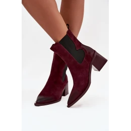 Kožené semišové dámské boty na podpatku vyhřívané model 21712879 bordó - Artiker