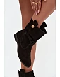 Dámské boty vyrobené z přírodního semiše jsou návrhem spojujícím eleganci a pohodlí, ideální na podzimní a zimní sezónu. Měkká kůže s semišovým povrchem vypadá velmi stylově a je příjemná na dotek, a díky své odolnosti zajišťuje dlouhodobé používání. Model s plochou podešví poskytuje pohodlí a stabilitu při každodenním nošení. Nízky střih usnadňuje nazouvání a vyzouvání, a uvnitř je vycpaný obuvním kožíškem, který udržuje teplo a pohodlí v chladnějších dnech. Zaoblené špičky dodávají celku klasický, nadčasový vzhled, a jemný zlatý detail na straně boty je elegantní akcent, který model jemně odlišuje. Jsou to univerzální boty, které se skvěle hodí jak k volnočasovým, tak i elegantním outfitům. Při výběru velikosti se řiďte tabulkou velikostí. Při výběru velikosti se řiďte tabulkou velikostí.