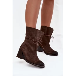 Přidání recenze k Kožené semišové dámské kotníkové boty na podpatku model 21744772 čokoládové - Zazoo