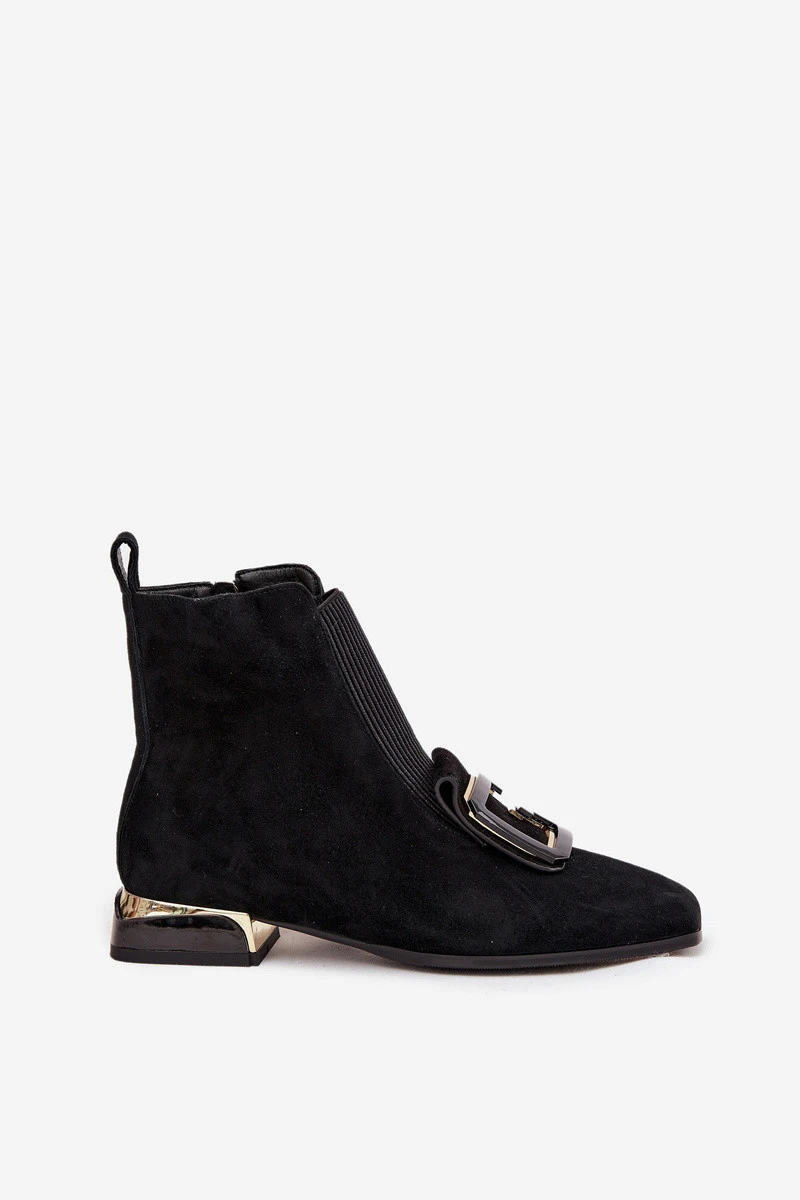 Kožené semišové dámské kotníky na nízkém podpatku s ozdobou D&A MR52-217 Černé