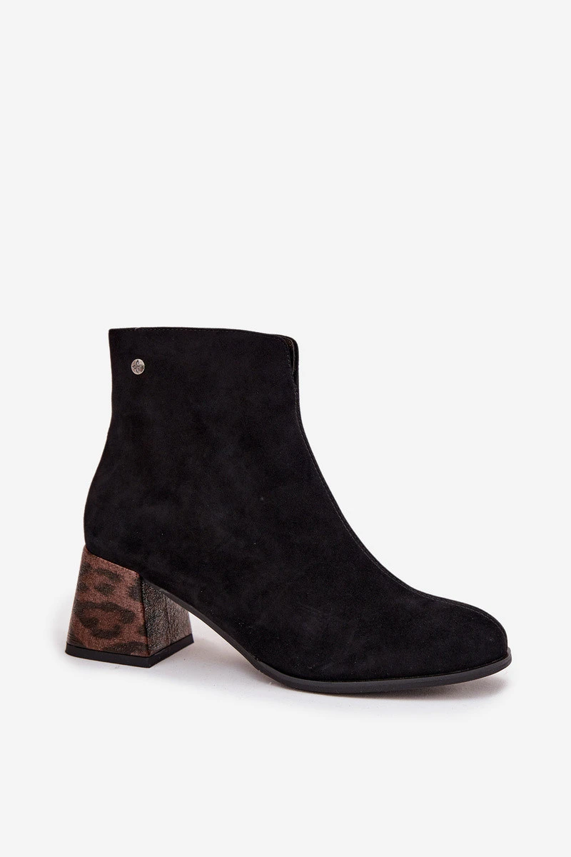 Kožené semišové dámské kotníky na podpatku Maciejka K7202-01 Černé