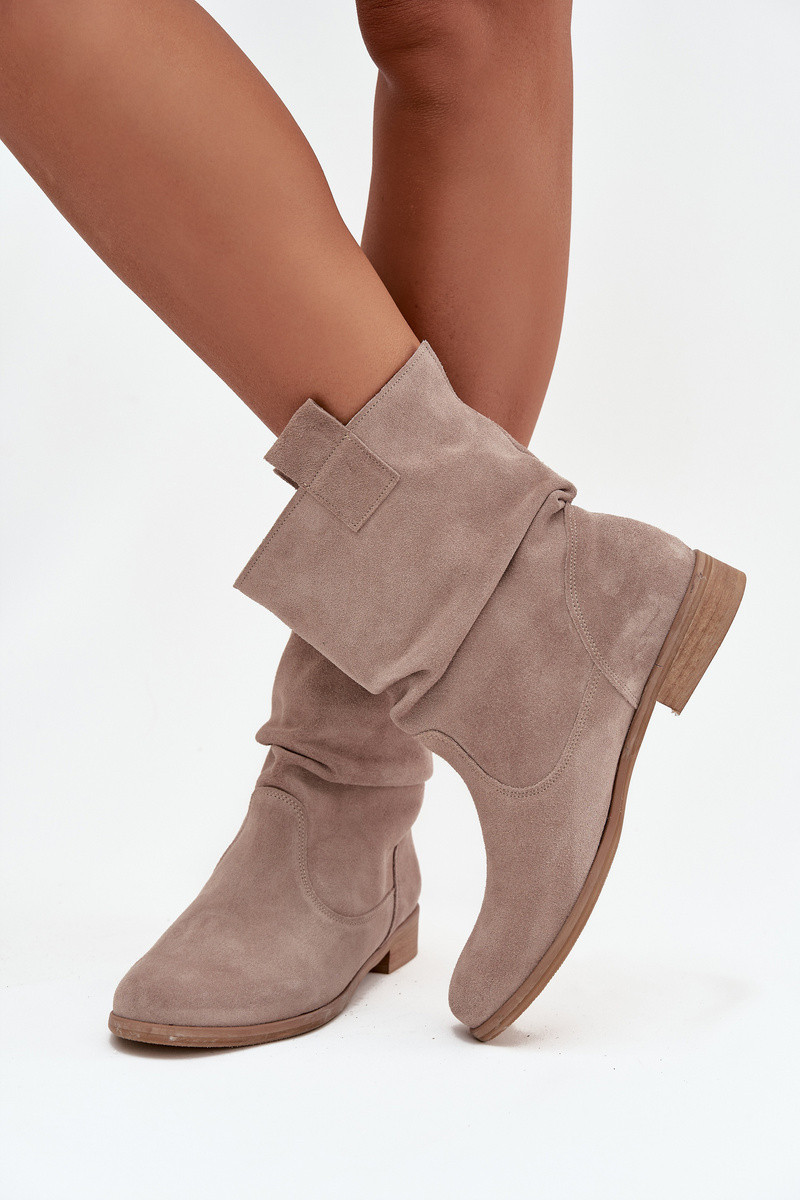 Kožené semišové dámské kotníky s řasením s vyhříváním Zazoo 4210 béžové