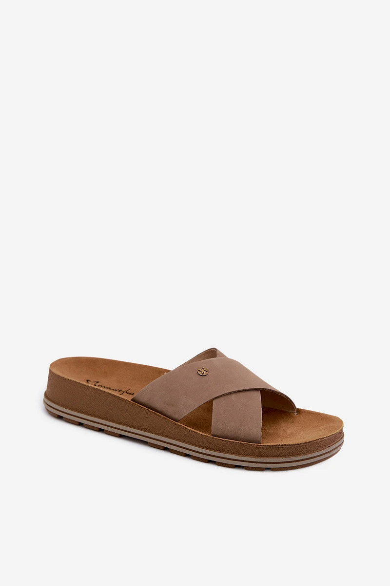 Kožené Semišové Dámské Pantofle model 22120786 Béžové - Maciejka