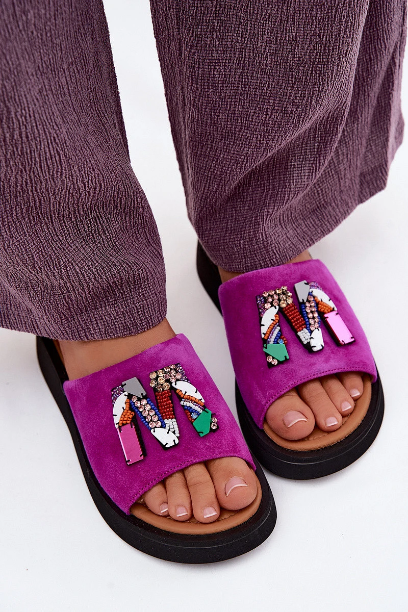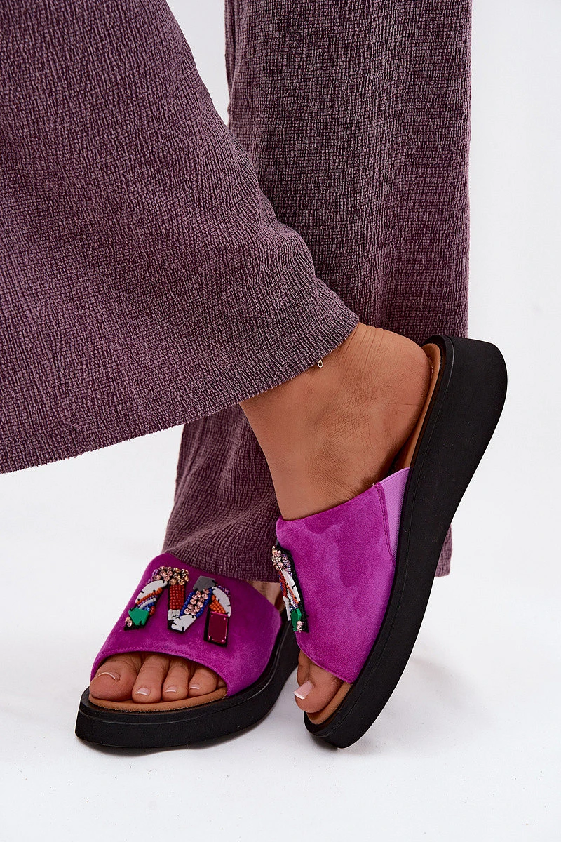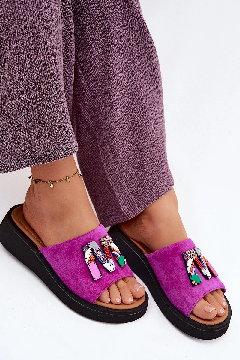 Přidání recenze k Kožené semišové dámské pantofle s ozdobou na platformě model 22125953 fuchsiové - VINCEZA
