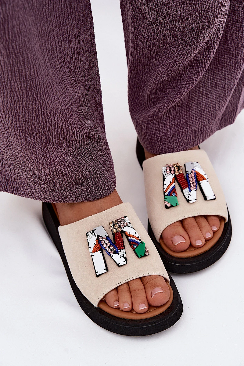Přidání recenze k Kožené semišové dámské pantofle s ozdobou na platformě Vinceza 66942 béžové
