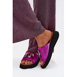 Přidání recenze k Kožené semišové dámské pantofle s ozdobou na platformě Vinceza 66942 fuchsiové