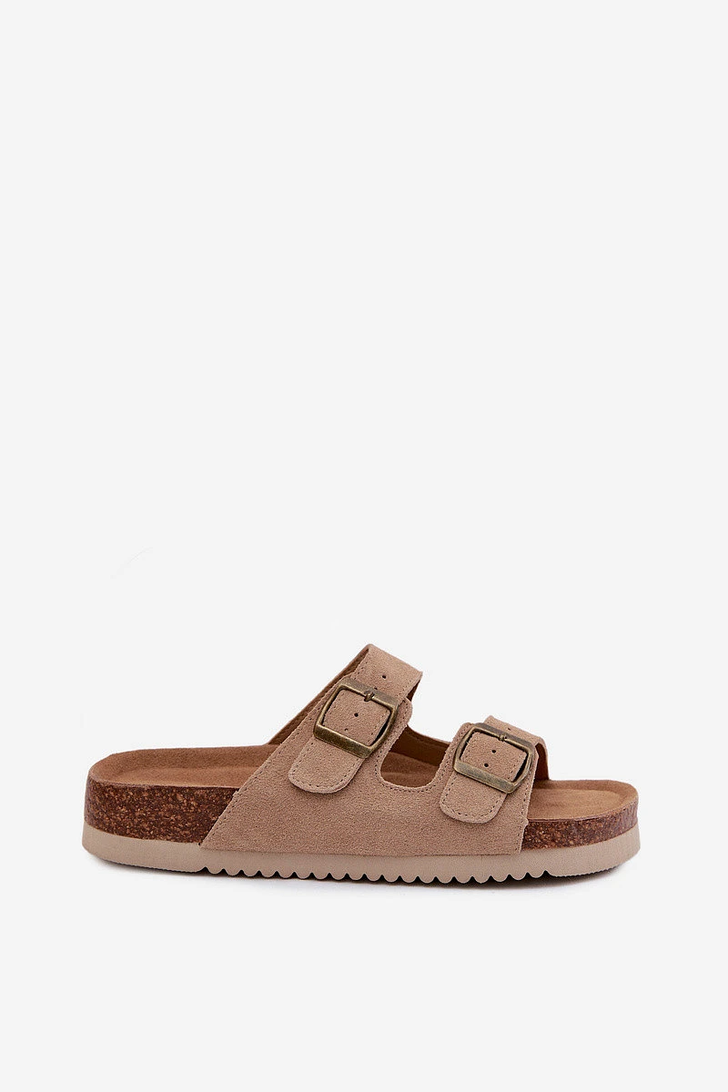 Kožené semišové dámské pantofle s přezkami tmavě béžové model 22125558 - Boto
