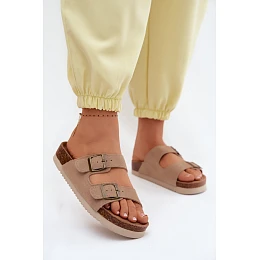 Přidání recenze k Kožené semišové dámské pantofle s přezkami tmavě béžové Rosaliae