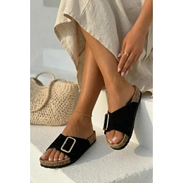 Přidání recenze k Kožené semišové dámské pantofle s přezkou černé Beryl