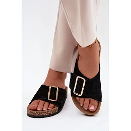 Kožené semišové dámské pantofle s přezkou černé model 22120816 - Boto