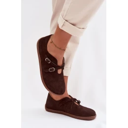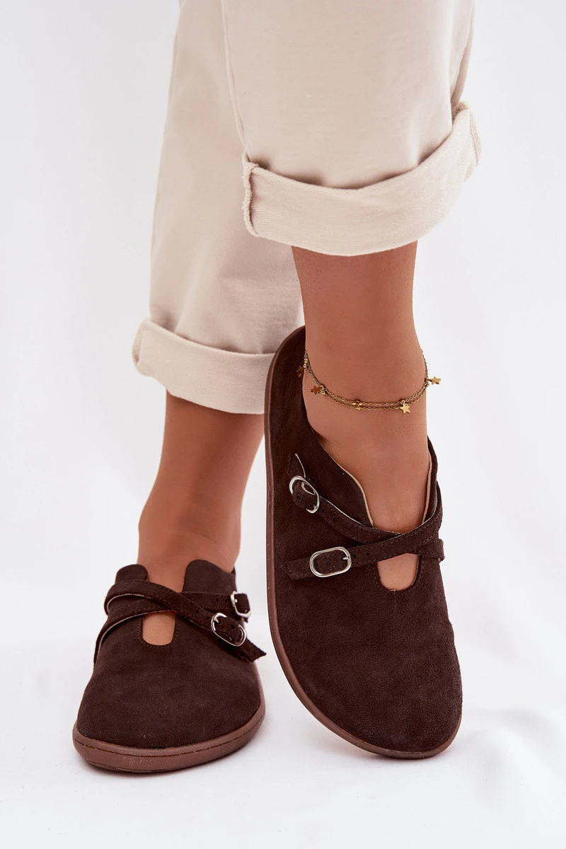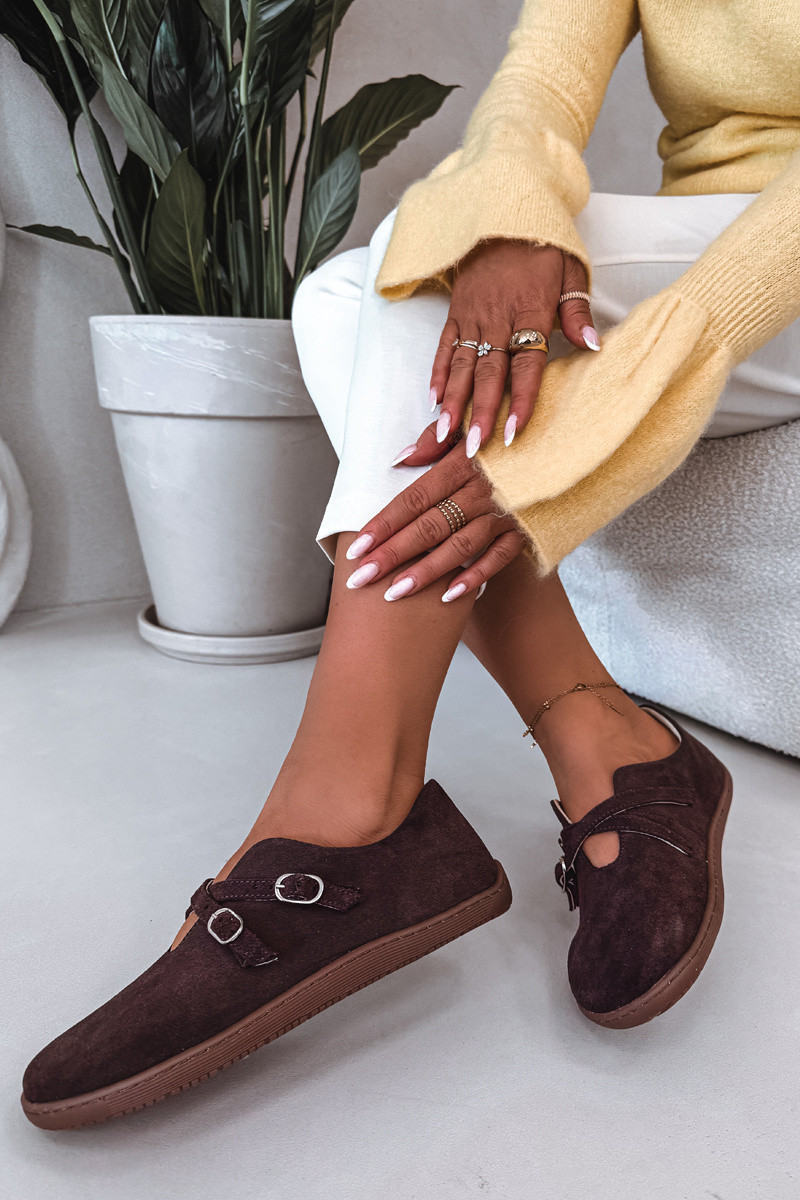 Kožené semišové dámské polobotky s pásky Zazoo N1271 čokoládové