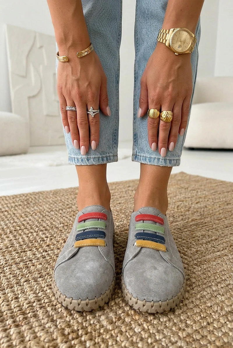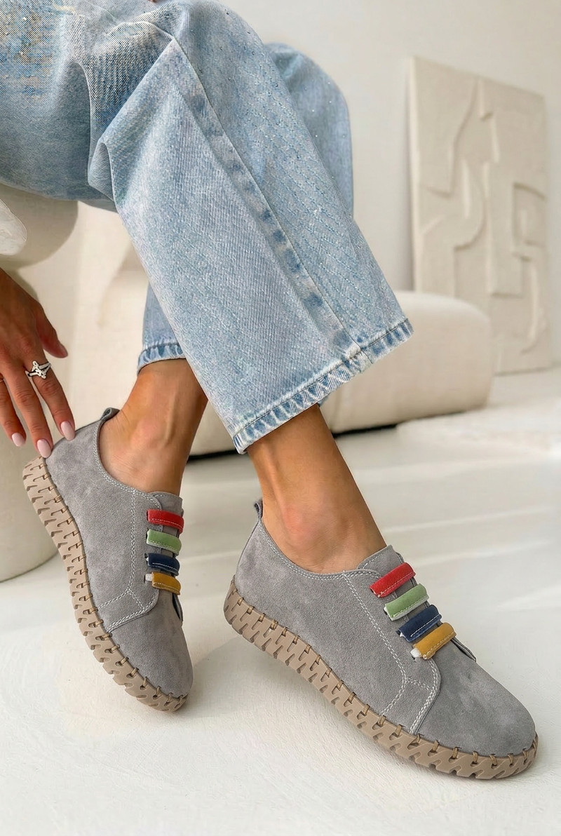 Dámské polobotky Vinceza vyrobené z přírodního semiše jsou stylovým a pohodlným modelem ideálním pro každodenní nošení. Měkký materiál zajišťuje elegantní vzhled a zároveň vysoký komfort při nošení. Model je nazouvací, což usnadňuje rychlé obouvání a zouvání. Přední část boty zdobí barevné pásky umístěné na elastických gumičkách, které představují zajímavý dekorativní prvek a zároveň pomáhají lépe přizpůsobit botu noze. Półboty skvěle ladí jak s džínami, tak s kalhotami z látky nebo s více casual outfity, zajišťují pohodlí a módní vzhled po celý den. Při výběru velikosti se řiďte tabulkou velikostí.