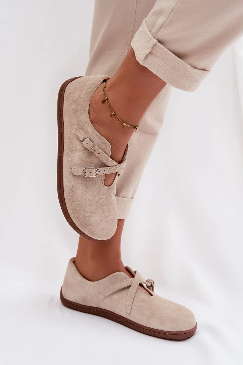 Dámské polobotky vyrobené z přírodního semiše v stylu Barefoot jsou skvělou volbou pro ženy, které ocení přirozený pohyb nohy a maximální pohodlí. Flexibilní, plochá podrážka a anatomický tvar umožňují noze pracovat přirozeným způsobem, zajišťujíce pohodlí po celý den. Na přední straně jsou dvě proplétající se pásky, které dodávají jemný, ženský charakter a jemně zvýrazňují nohu. Tento model je ideální pro každodenní stylizace. Při výběru velikosti se řiďte tabulkou velikostí.