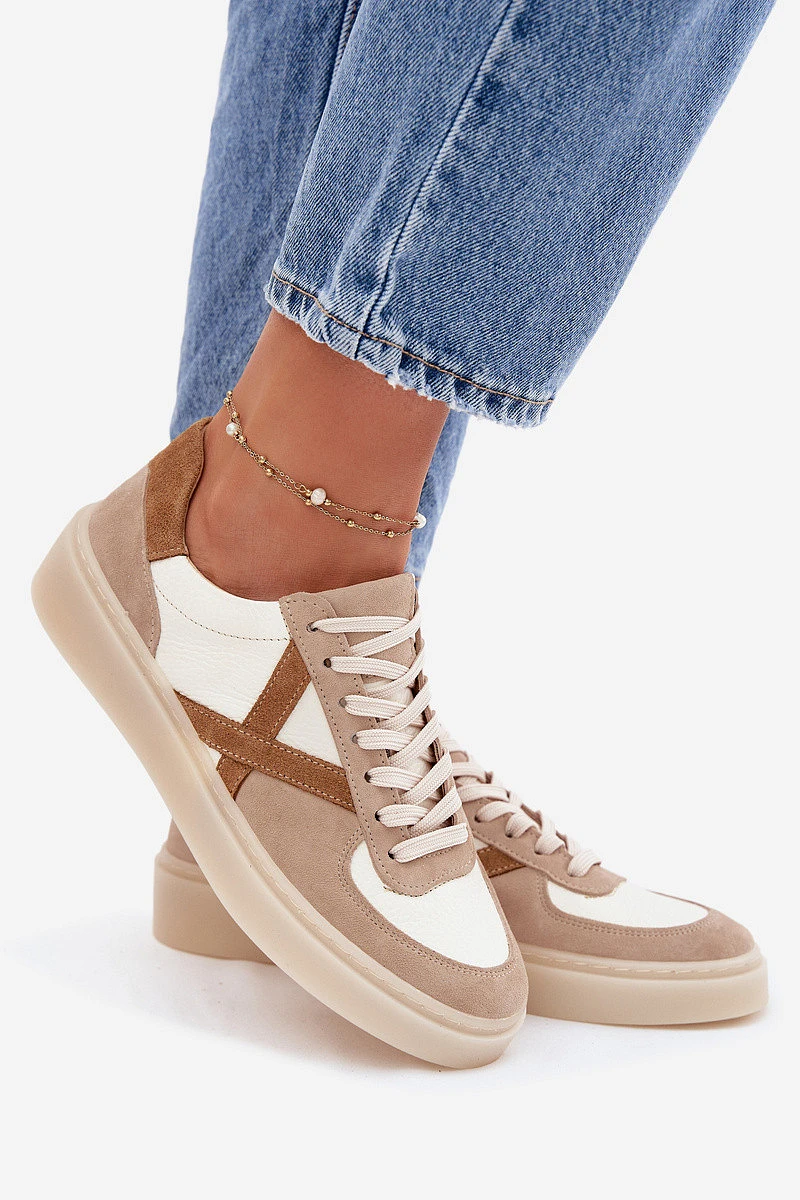 Přidání recenze k Kožené semišové dámské tenisky model 22076948 béžové - Zazoo