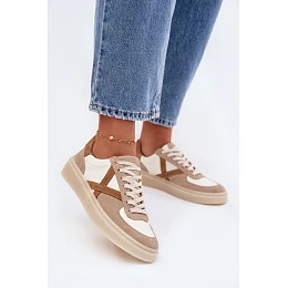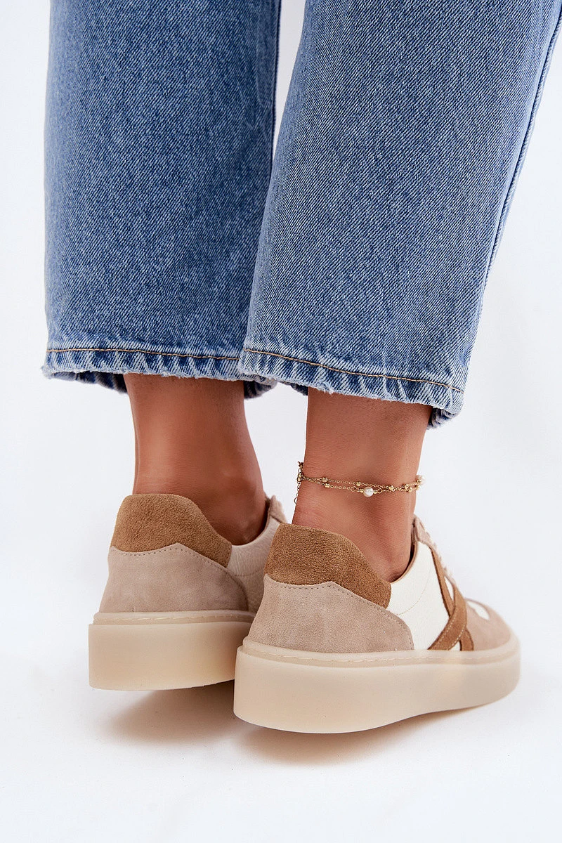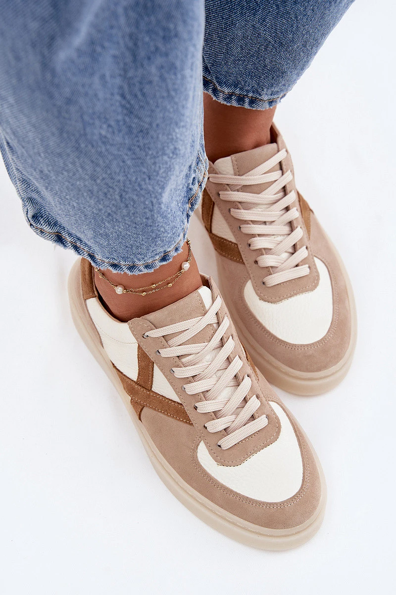 Kožené semišové dámské tenisky model 22076948 béžové - Zazoo