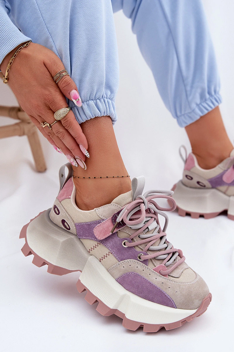 Přidání recenze k Kožené semišové dámské tenisky model 22095128 fialové - Goe