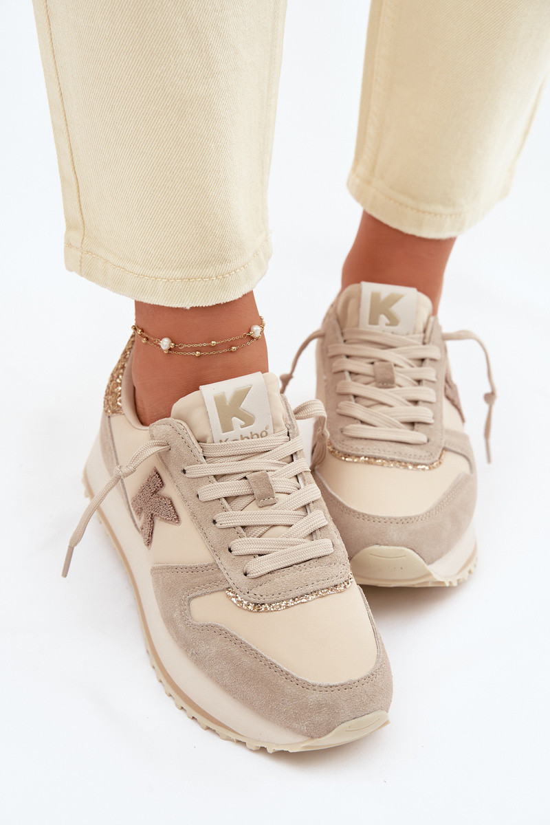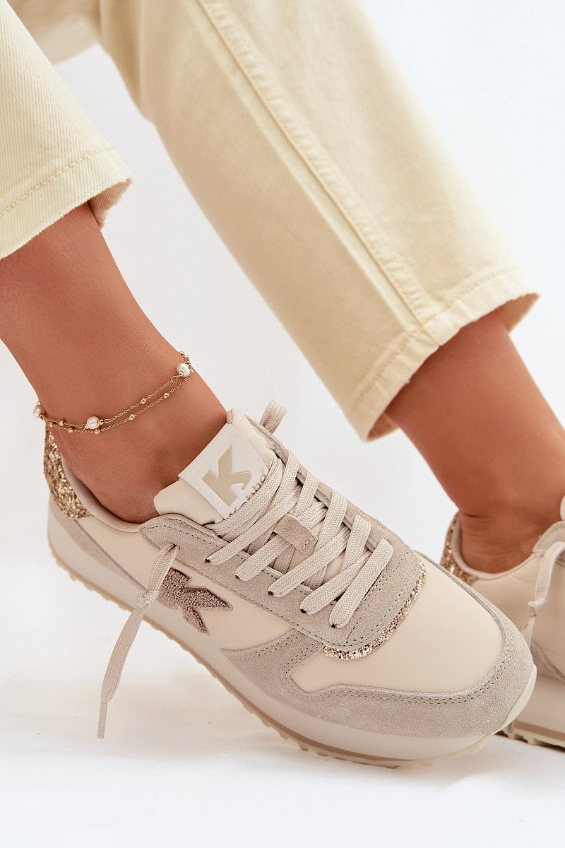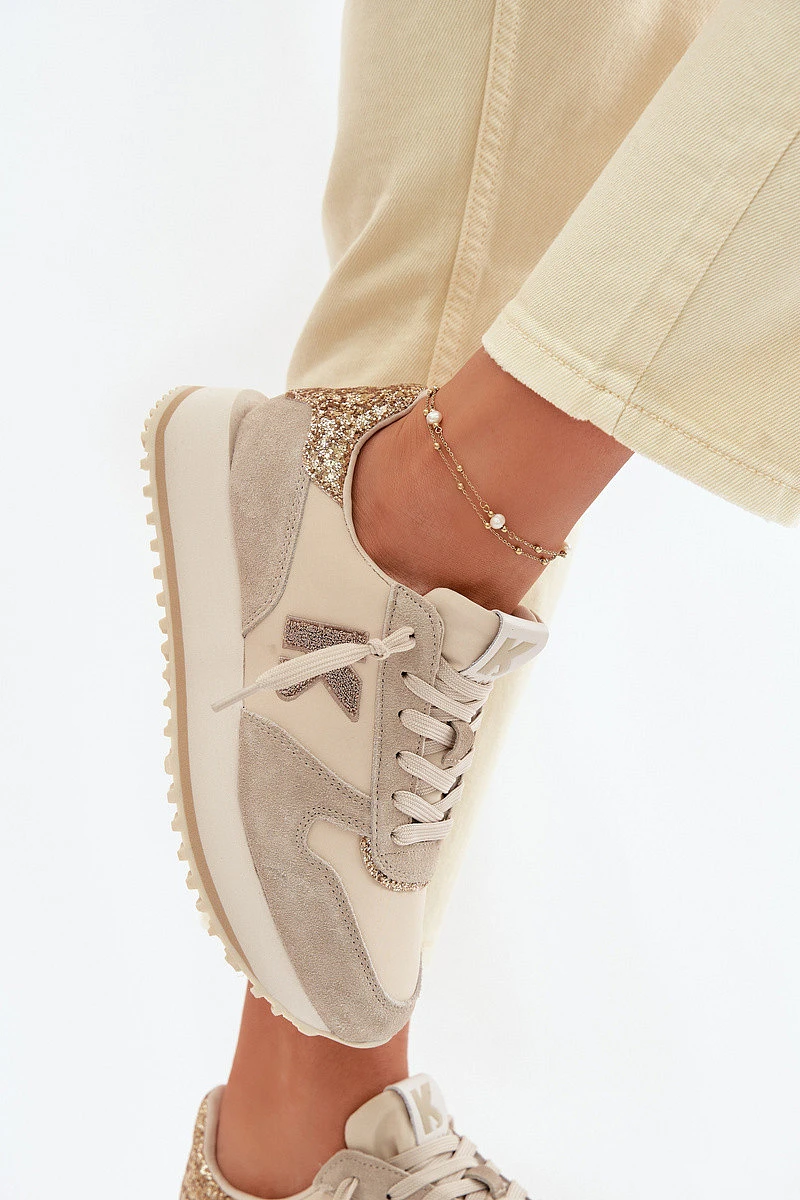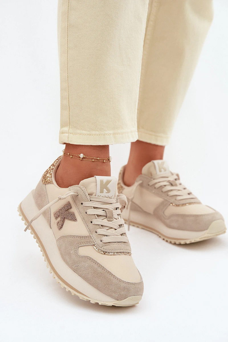 Dámské tenisky vyrobené ze spojení přírodního semiše a textilního materiálu jsou stylovým modelem, který spojuje módní vzhled s každodenním komfortem. Kombinace různých materiálů dodává moderní charakter a zajišťuje pohodlí při nošení. Model vyniká dekorativními vložkami se zirkony umístěnými vpředu a vzadu na botě, které dodávají celku elegantní lesk. Na boku je ozdobné písmeno K, které podtrhuje jedinečný styl obuvi. Tenisky jsou postaveny na platformové podrážce, která jemně zvedá nohu a opticky zeštíhluje siluetu, zároveň zvyšuje pohodlí při chůzi. Tato módní volba skvěle doplní mnoho každodenních outfitů. Při výběru velikosti se řiďte tabulkou velikostí.