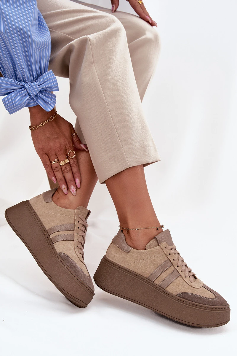 Kožené semišové dámské tenisky na platformě model 21713090 béžové - Zazoo