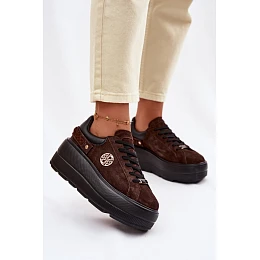 Kožené semišové dámské tenisky na platformě model 22100251 čokoládové - D&A