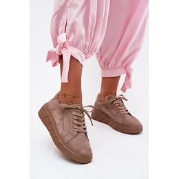 Kožené semišové dámské tenisky na platformě Tmavě béžové model 22123282 - EVENTO