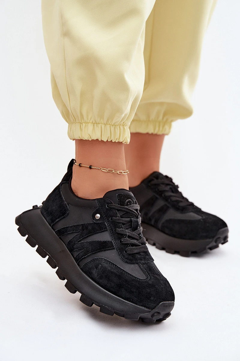 Kožené semišové dámské tenisky na platformě Vinceza 41520 Černé