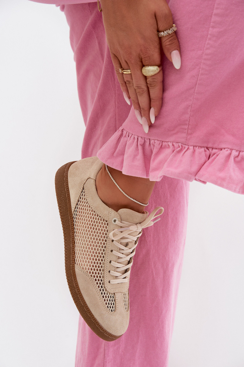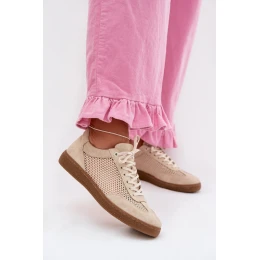 Přidání recenze k Kožené semišové dámské tenisky s síťovinou model 22027653 Béžové - Zazoo