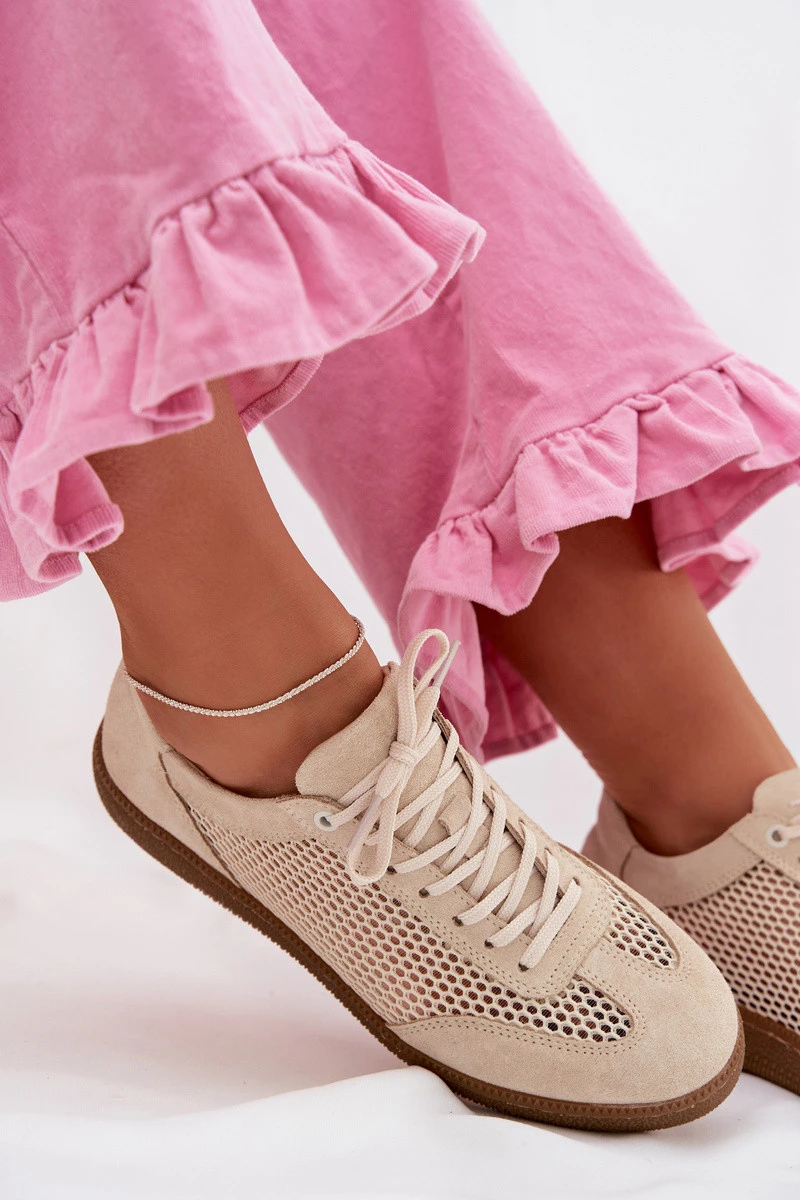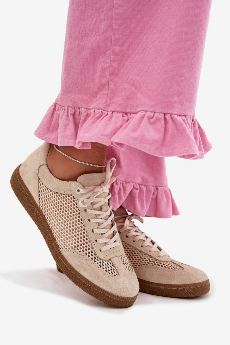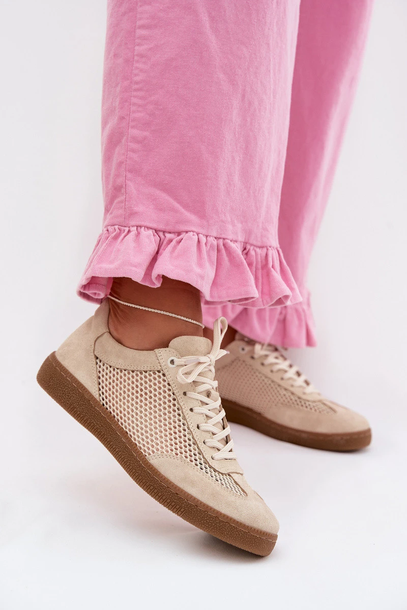 Kožené semišové dámské tenisky s síťovinou model 22027653 Béžové - Zazoo