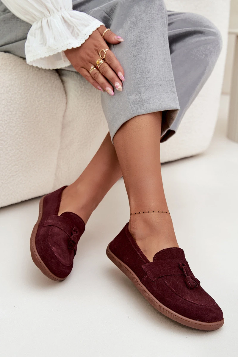 Kožené semišové model 21712686 typu barefoot 322 bordó - Zazoo